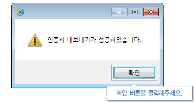 파일저장이 되면 인증서 내보내기가 정상적으로 완료된 것입니다. [확인] 버튼을 선택합니다.