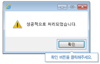 정상적으로 처리되면 [확인]버튼을 선택합니다.