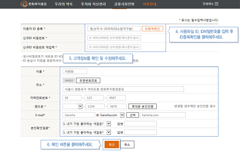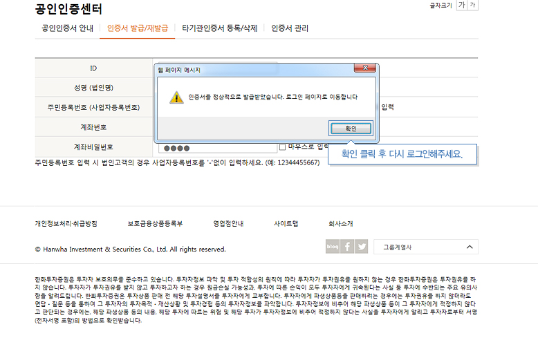 한화투자증권 거래 시 사용할 공인인증서를 발급 받으실 수 있습니다.